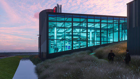 Een bijzonder element in het ontwerp zijn de gevels met regenboogkleurig glas, waardoor bezoekers en voorbijgangers een steeds veranderend beeld krijgen van de technische installaties binnen. Met zorgvuldig geplaatste verlichting versterken we deze visuele beleving na zonsondergang, waardoor het gebouw niet alleen functioneel is, maar ook als duurzaam icoon zichtbaar wordt in het Leidse landschap.